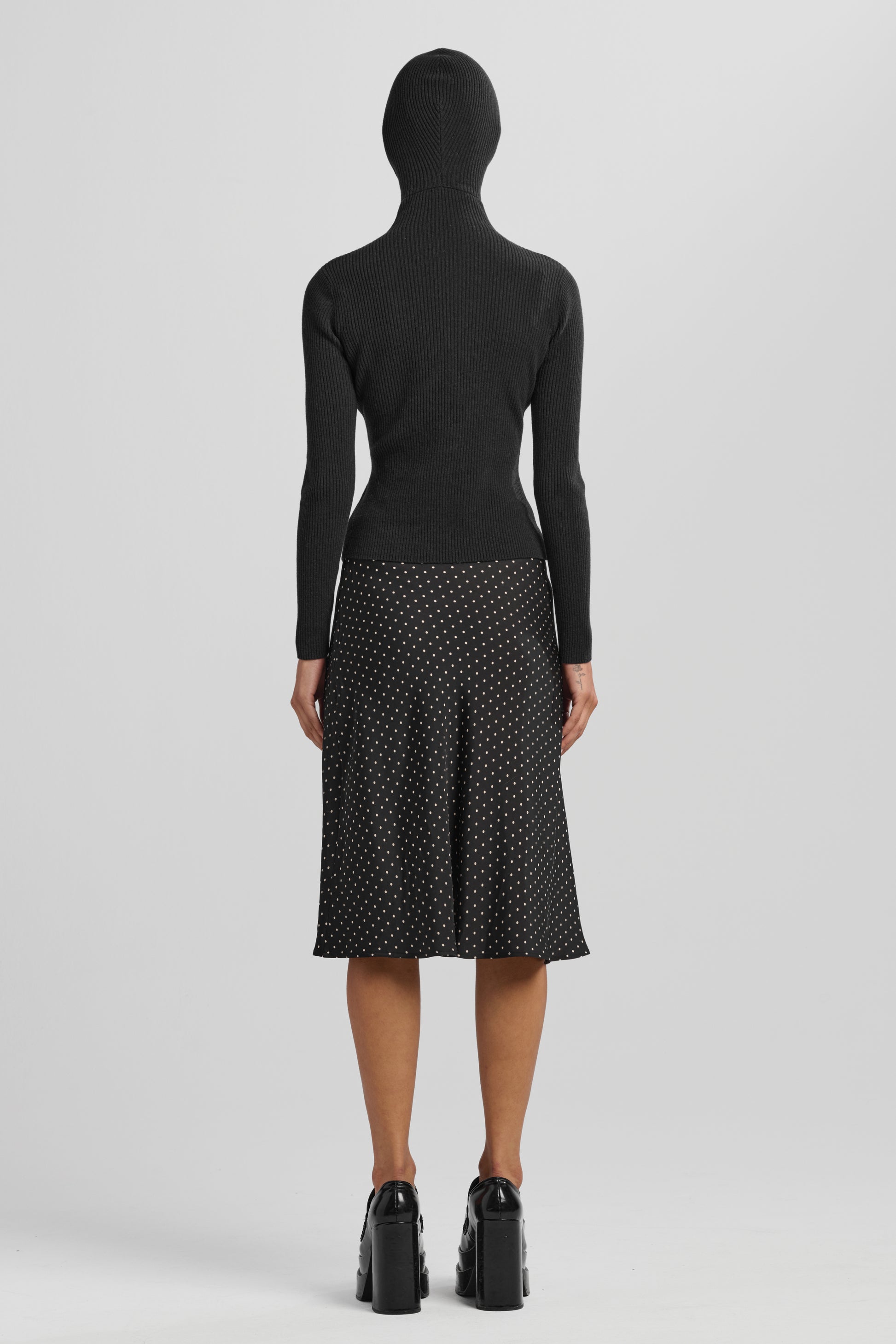 The Audrey Turtleneck brings a modern twist to a cold-weather essential. Crafted in a rib knit from a warm wool blend, it features a softly structured balaclava hood that adds both warmth and edge. Its fit layers effortlessly under tailoring or over relaxed trousers, making it a versatile staple for the season. Available in Beige and Black.