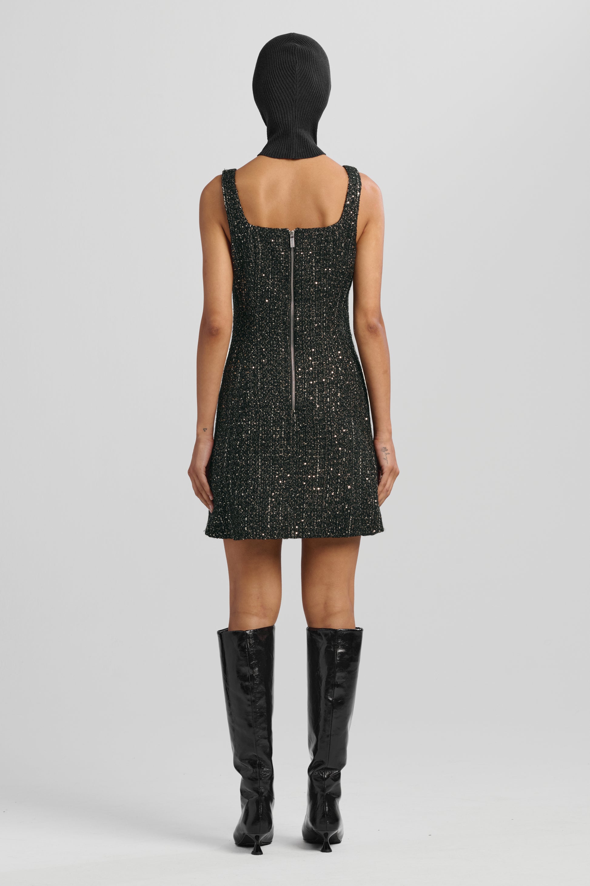 The Mia Dress makes a statement with its square neckline and exposed silver-tone zip. Sculptural in shape and shimmering in finish, this mini dress is made to stand out. Its structured silhouette and metallic texture bring a sense of edge to evening dressing.