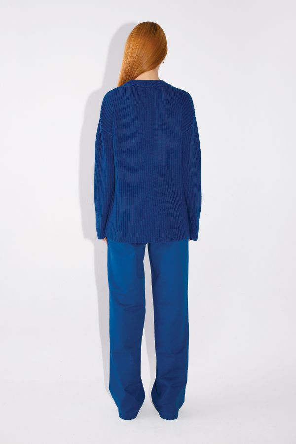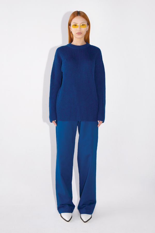 Crafted for maximum comfort and luxury. The oversized sweater builds the perfect effortless look styled with trousers or a skirt. The unique ribbed collar adds a touch of sophistication while our assorted colourways bring bold and chic to any setting. This 100% Merino Wool staple will have you looking and feeling your best.